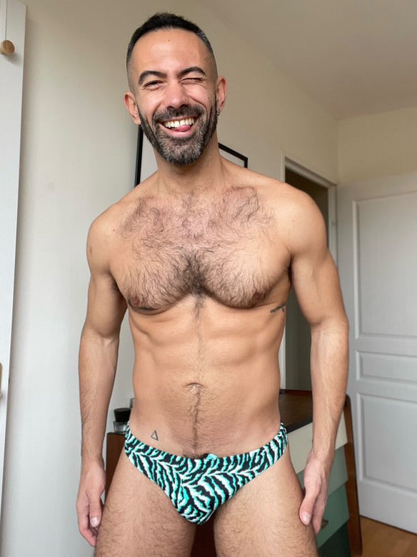 - Low-rise Male Swimwear Bikini with adjustable inside drawstring waistband.