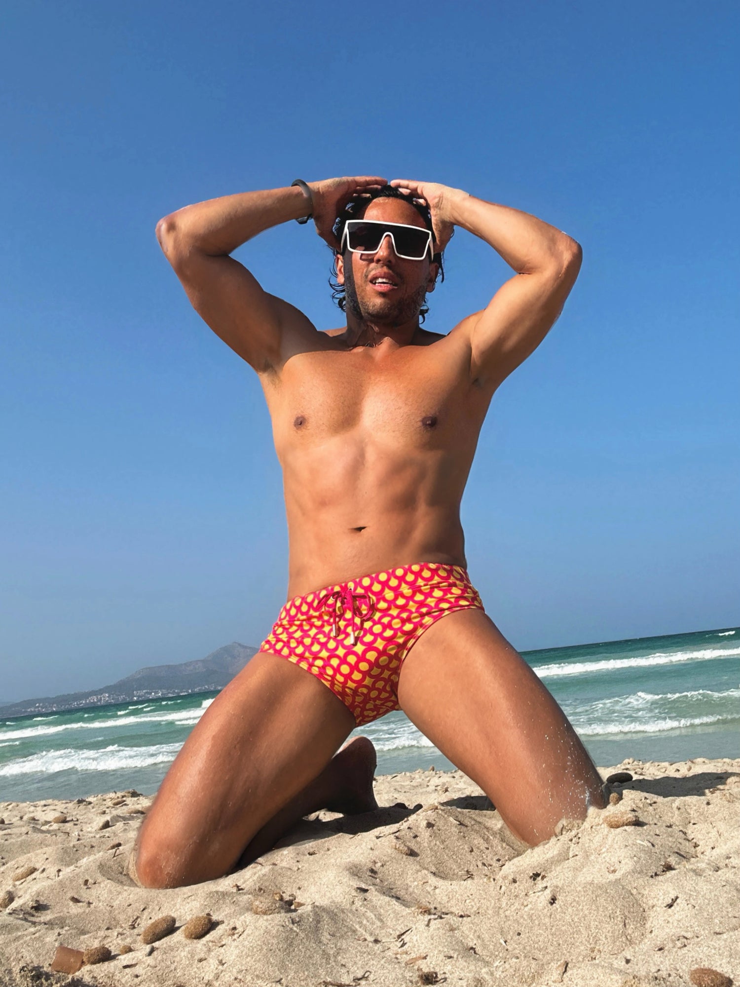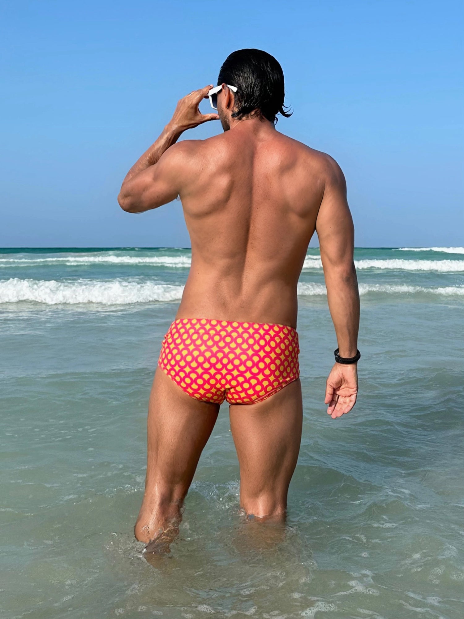 The Sunga Barcelona is a vibrant and stylish swimwear choice for the modern man. Featuring a striking combination of pink and yellow, this Colombian-made sunga is designed for both comfort and durability. With a fully lined front and back, it provides a perfect fit while maintaining a sleek, bold look. Whether you're lounging by the pool or making waves at the beach, the Sunga Barcelona will help you stand out with confidence. Available in sizes S, M, L, and XL, this sunga is a must-have addition to your swimwear collection.